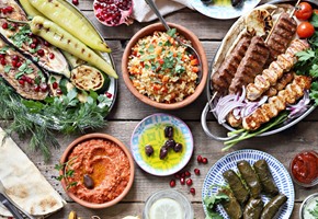 Delicious food and wine