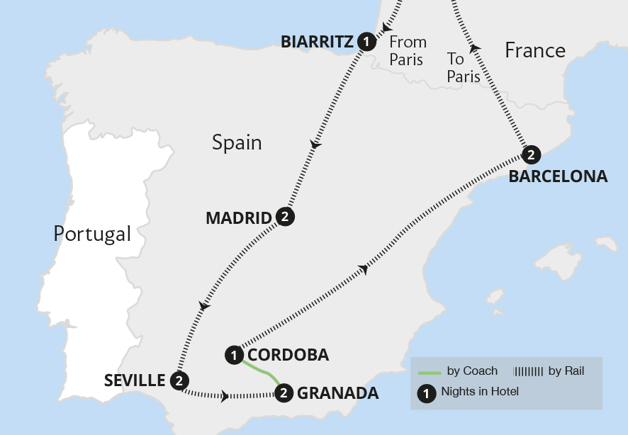 Discover the rich cultural heritage and artistry of Spain. On a journey through iconic cities, we travel from the capital of Madrid, into Moorish Andalucía and Barcelona. We explore Granada's World Heritage Alhambra palaces and gardens, Seville's vibrant landmarks including its historic cathedral, and wander through Córdoba's magnificent...