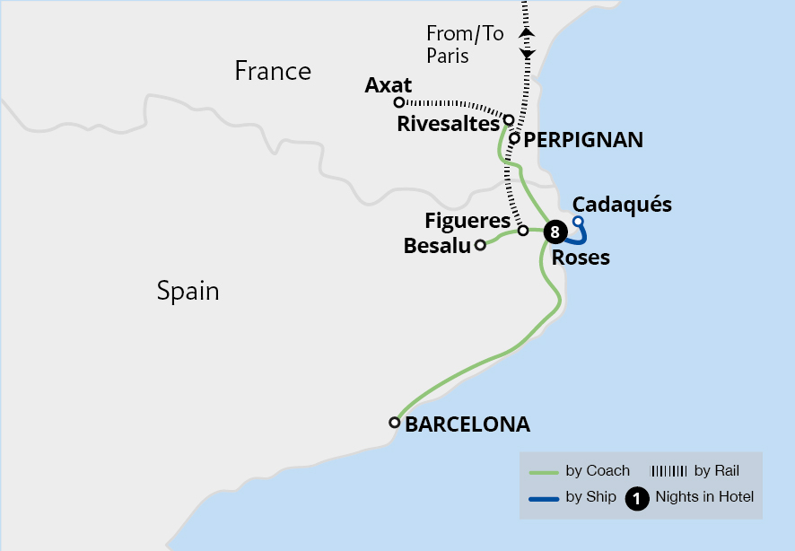 Discover the beauty of the Costa Brava on our Roses, Cadaques & the Catalan Coast tour. A scenic boat trip brings you to the charming whitewashed village of Cadaqués, where the Mediterranean sparkles against rugged cliffs.