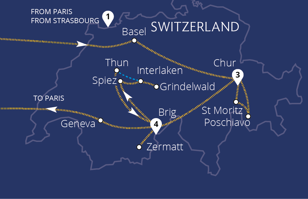 Experience epic mountain landscapes and shimmering alpine lakes on this fantastic holiday to Switzerland. Discover the Swiss Alps on the world-acclaimed Bernina Express and Glacier Express from our popular bases in Chur and Brig, traditional towns surrounded by snow-capped peaks. Enjoy a private aperitif on the terrace of the 10th-century ...