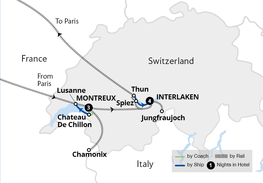 On this sensational holiday, travel from Montreux on the shores of Lake Geneva to the mountainous surroundings of the Jungfrau Massif. Explore Château de Chillon, sail on Lake Geneva and cross the Alps to the French mountain town of Chamonix on the Mont Blanc Express. Boarding the GoldenPass Express, admire views of the Bernese Alps enroute to...