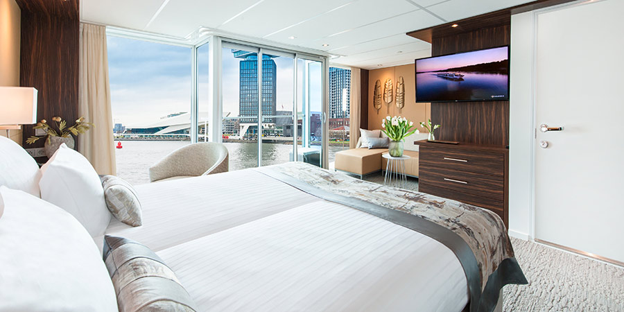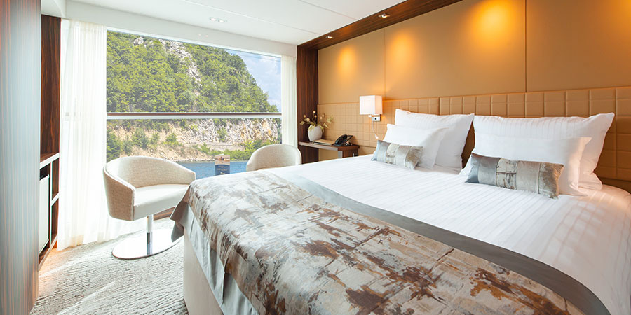 Accommodation on board our ships is some of the finest found on any river cruise ships operated across Europe. We strive to offer you the best with our staterooms and suites, prioritising comfort, space and taste above all else, and giving all the quality of a 5-Star hotel room on water. From enormous windows providing sumptuous views of the passing landscapes, to well-appointed furniture as well as tea & coffee making facilities, every cabin aboard our ships is designed to impress and indulge.
