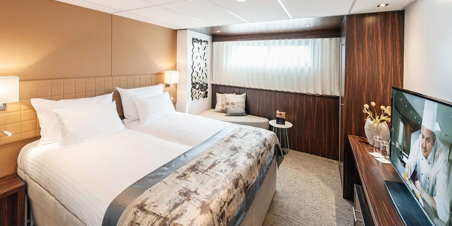 Travel the rivers in the utmost comfort and style when you choose to stay in one of our incredible Deluxe Suites. These cabins are larger than the others on board, at 26.4 square metres, and come with additional touches that adds just that extra touch of opulence.