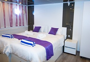 • Cabins feature air-conditioning, a safe, an audio system, a wardrobe, desk, sofa, and porthole window. En-suite bathrooms include a shower and a hairdryer and beds can be configured to twins or a double.
