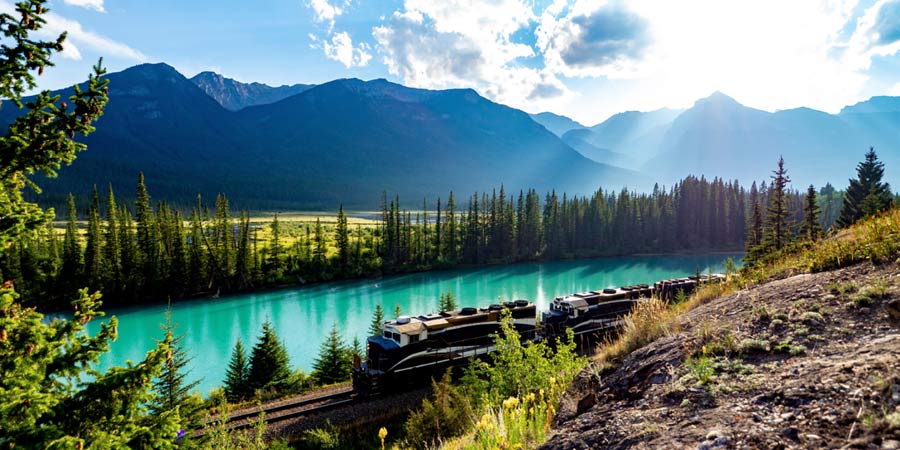 As the train pulls out of Vancouver and heads towards its overnight stop in Kamloops, your eyes will be treated to the most magnificent lakes and valleys of British Columbia. Further down the route to Banff, you'll be completely immersed in the raw beauty of the Canadian Rockies, with its rugged peaks and untamed wilderness.